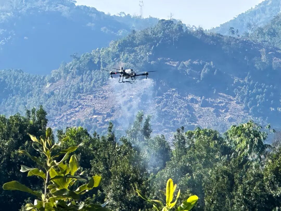 “以前人工给坚果打药,又累又不均匀。现在用无人机,飞一遍就又快又准!”在镇康县田坝村,一支由14名飞手、8台无人机组成的飞防小分队正活跃在田间。无人机进行坚果飞防,既把农户从繁重劳作中解放出来,也催生了“无人机飞手”这一科技感十足的新职业。这些持证上岗的飞手多是本村村民,从“面朝黄土”的传统农民转型为操控智能设备的“新农人”,服务范围已扩至耿马、昌宁等周边地区。