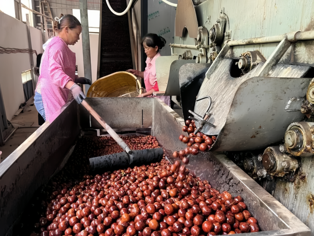 每逢坚果采摘季,在耿马县勐简乡的临沧坚果加工厂,机器轰鸣,近百名工人在这里进行分选、烘干、包装作业。这座日处理100吨的“产业链中枢”,让周边群众实现了“离土不离乡”的就业。村民周进佳感慨:“以前种玉米,一年到头攒不下几个钱,现在在厂里上班,一个月能挣3500元,比外出打工稳妥多了。”