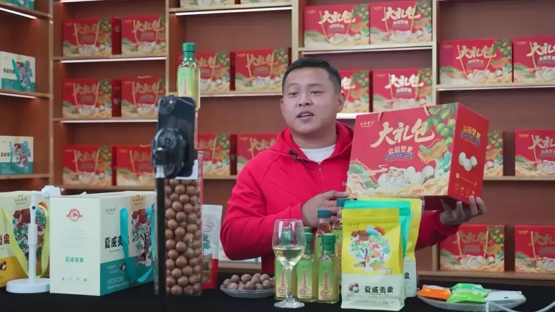 电商主播直播间推介临沧坚果。镇康县融媒体中心供图