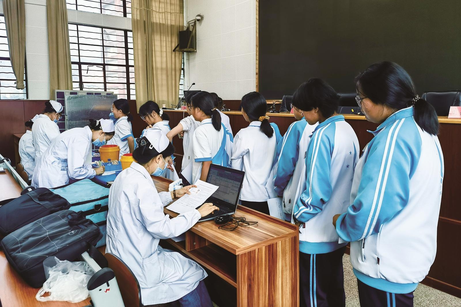 为最大限度减少接种工作对学生学习和校园生活的影响,临翔区采取“校园集中接种+常规门诊补种”的灵活方式开展接种工作。临翔区卫健、教体等部门提前统筹协调,科学规划接种时段与场地,由医护人员按照年级、班级分批次错峰在校园开展接种工作。