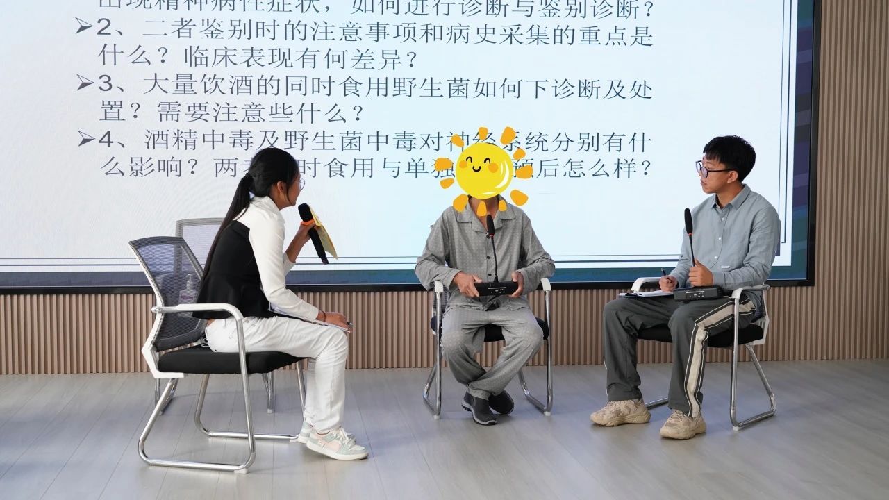 会议以现场病例分享➕讨论的形式开展,病例分享了一名长期饮酒的患者,在大量饮酒同时食用“见手青”后出现震颤谵妄的应急反应。两家医院以多学科诊疗模式(MDT)进行融合教学查房。此次病例讨论旨在总结病例、提升MDT模式的推广应用,不断提升急危重症患者的急诊急救能力。