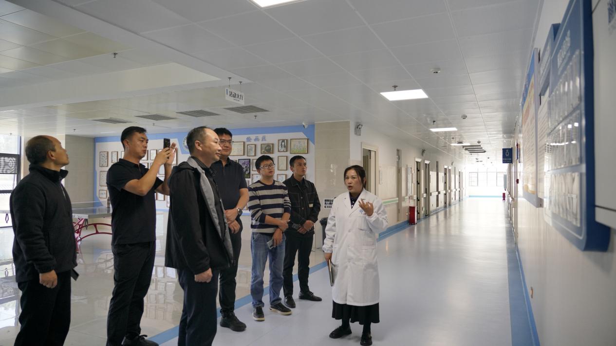 交流期间,来访团队先后实地参观了我院新院区、老院区、闲庭水榭门诊及严重精神障碍患者居家管理与救助救治临翔区工作点,沿着精神康复科、精神病人福利院、心境障碍科、物理治疗科、精神卫生科普基地、醒酒中心、心理健康服务科等参观路线,细致参观了病区改造布局、基础设施建设及诊疗环境。每到一处,我院相关科室负责人都详细介绍了科室运营、特色诊疗项目及服务模式,双方就临床护理、康复治疗等实操问题进行即时交流。