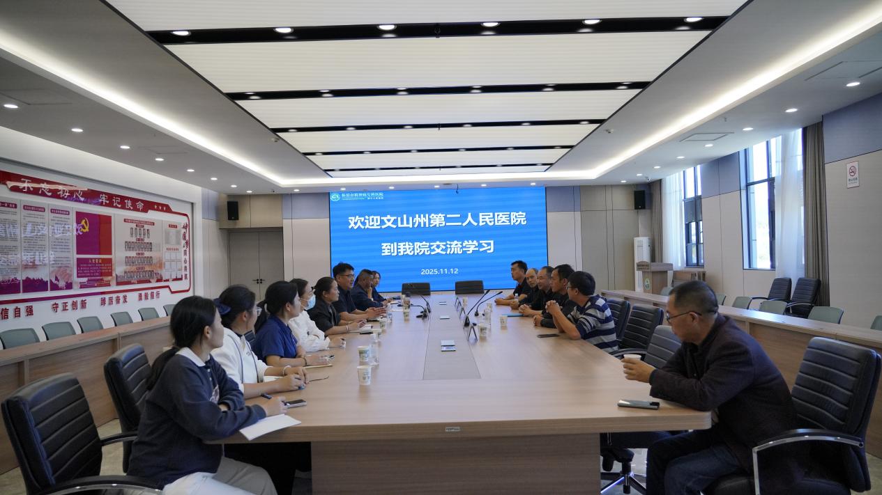 为深化精神卫生领域合作,共享优质医疗资源与管理经验,11月12日到13日,文山州第二人民医院一行5人到我院开展精神科建设专项交流学习活动。我院院长刘红兵、副院长吴家兵、副院长王天兰及相关科室负责人全程陪同,双方围绕精神卫生事业高质量发展展开深度探讨。