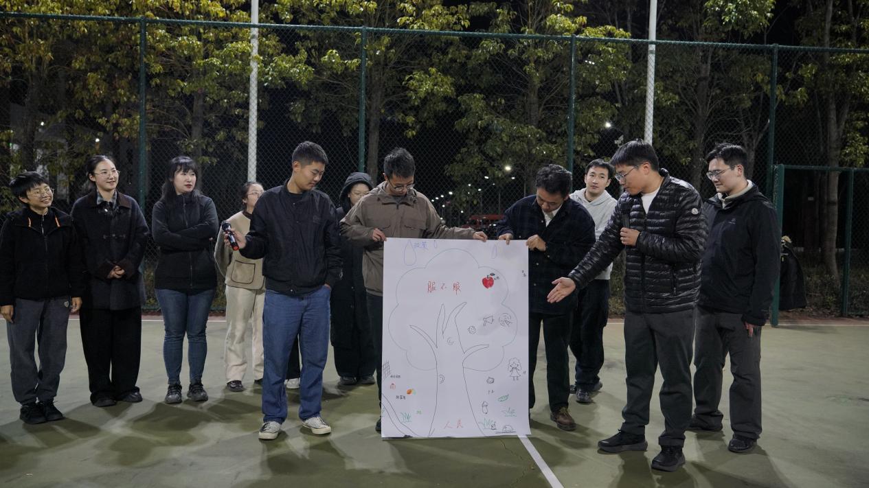 核心主题活动“边疆成长树”成为全场亮点。各小组围绕“树根稳、树干硬、树枝远、树冠茂”的创作理念,结合临沧多民族聚居、边疆乡村发展实际,用鲜活的笔触勾勒出扎根边疆的初心与蓝图。随后的小组展示中,可爱版、豪迈版、温柔版的“我要扎根临沧啦!”宣誓,更是喊出了选调生们的青春壮志。