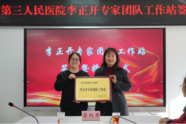 在热烈掌声中,李正开专家与李海院长签署合作协议,李正开专家与凤庆县人民医院精神科主任高映珊完成授牌,标志着工作站正式落户。
