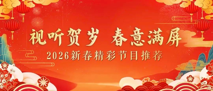 2026年新春将至,为更好满足人民群众多样化、高品质的精神文化需求,营造温暖团圆、欢乐祥和的节日氛围,国家广播电视总局精心策划组织“视听贺岁 春意满屏”新春精品视听节目展播,各广播电视台、网络视听平台用心用情打造推出近百档优质作品,涵盖晚会、电视剧、网络剧、微短剧、纪录片、动画片、文艺节目、广播节目等多种类型,为全国人民送上诚意满满、精彩纷呈的“春节文化大餐”。