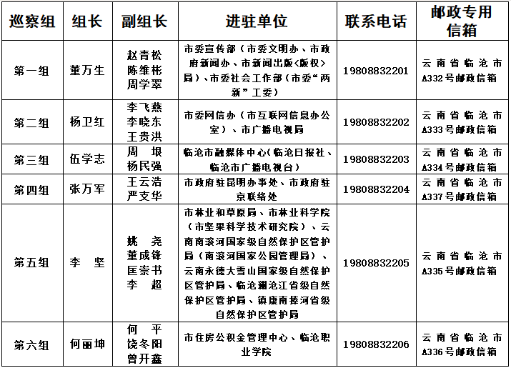 五届市委第十四轮巡察进驻情况及联系方式一览表