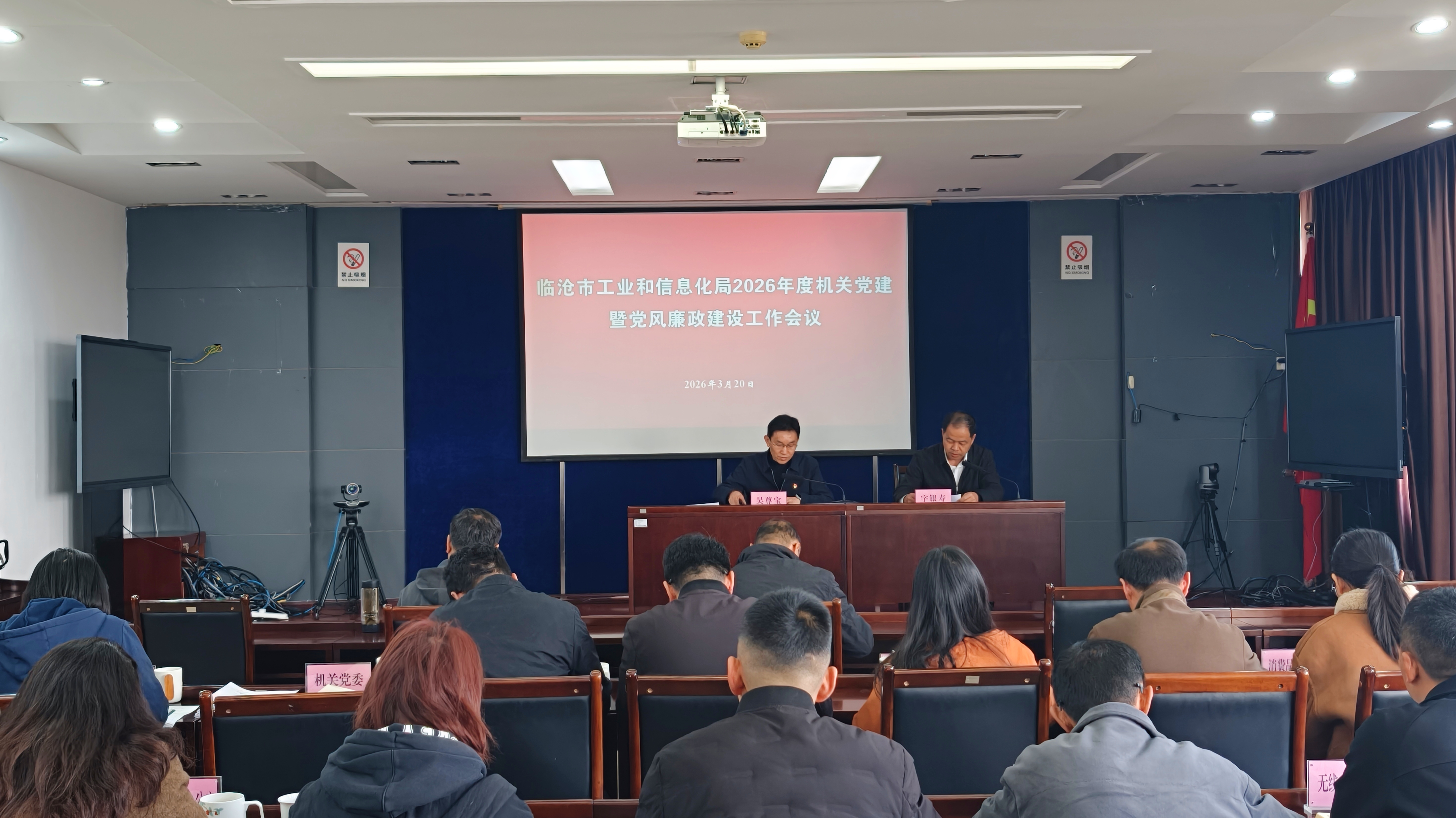 3月20日,市工业和信息化局召开2026年度机关党建暨党风廉政建设工作会议,总结2025年工作,分析当前形势,安排部署2026年重点工作任务,为“十五五”开好局、起好步提供坚强政治保证。党组书记、局长吴尊宝主持会议并讲话,党组成员、市纪委派驻市工业和信息化局纪检监察组组长字银寿出席会议并讲话。