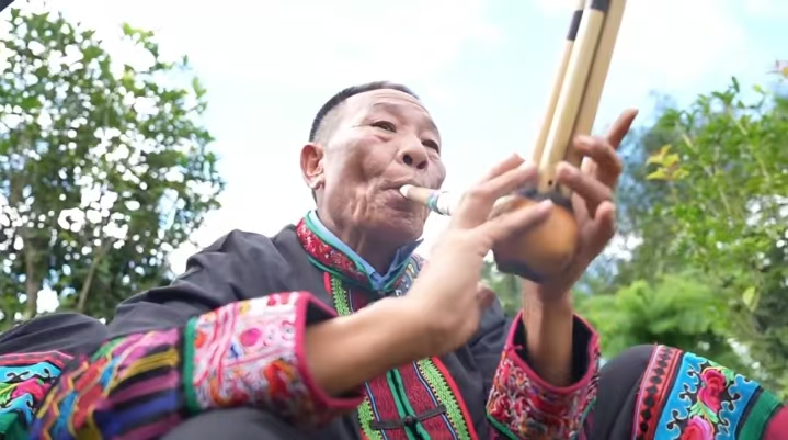 这三样乐器的搭配,蕴藏着阿数瑟的“音乐智慧”。笛子负责高音,三弦负责中音和节奏,葫芦笙负责中低音,高、中、低音色相互配合,层次分明。比如在演奏硬调时,三弦的扫弦节奏鲜明,笛子的高音旋律灵动,葫芦笙的低音打底,让整个音乐既热烈又饱满;在演奏软调时,三弦的拨弦温柔,笛子的旋律抒情,葫芦笙的音色古朴,营造出宁静的氛围。这种乐器组合,是镇康人在长期的生活实践中摸索出来的,既符合民间艺术的随性,又充满了科学的搭配思维。