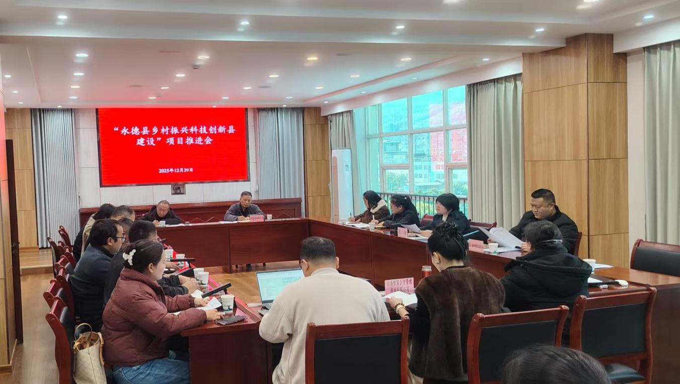 2025年12月29日,永德县召开乡村振兴科技创新县建设项目推进会,副县长左佳主持会议,县工业和科技信息化局相关领导、项目工作人员及各参建单位负责人共19人参加。