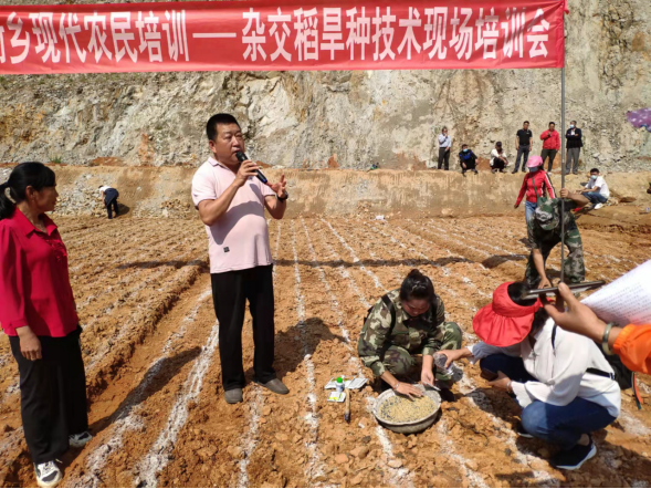 为确保杂交水稻旱种项目能顺利实施并取得成功,2022年5月6日,云县农业农村局分别在晓街乡和茶房乡召开杂交水稻旱种技术现场培训会,县、乡分管农业的主要领导及农业综合服务中心负责人员和涉及农户参加会议,累计培训150人次。临沧市农业技术推广站推广研员刘玉文同志亲临现场做技术培训指导,从田块选择、备地整地、种子处理、播种方式到病虫草害防治等一系列种植技术环节做了详细地讲解和现场操作演示,并对水稻旱种可能出现的各种情况都做出了预测,为确保农户能够增产增收提供了技术保障。