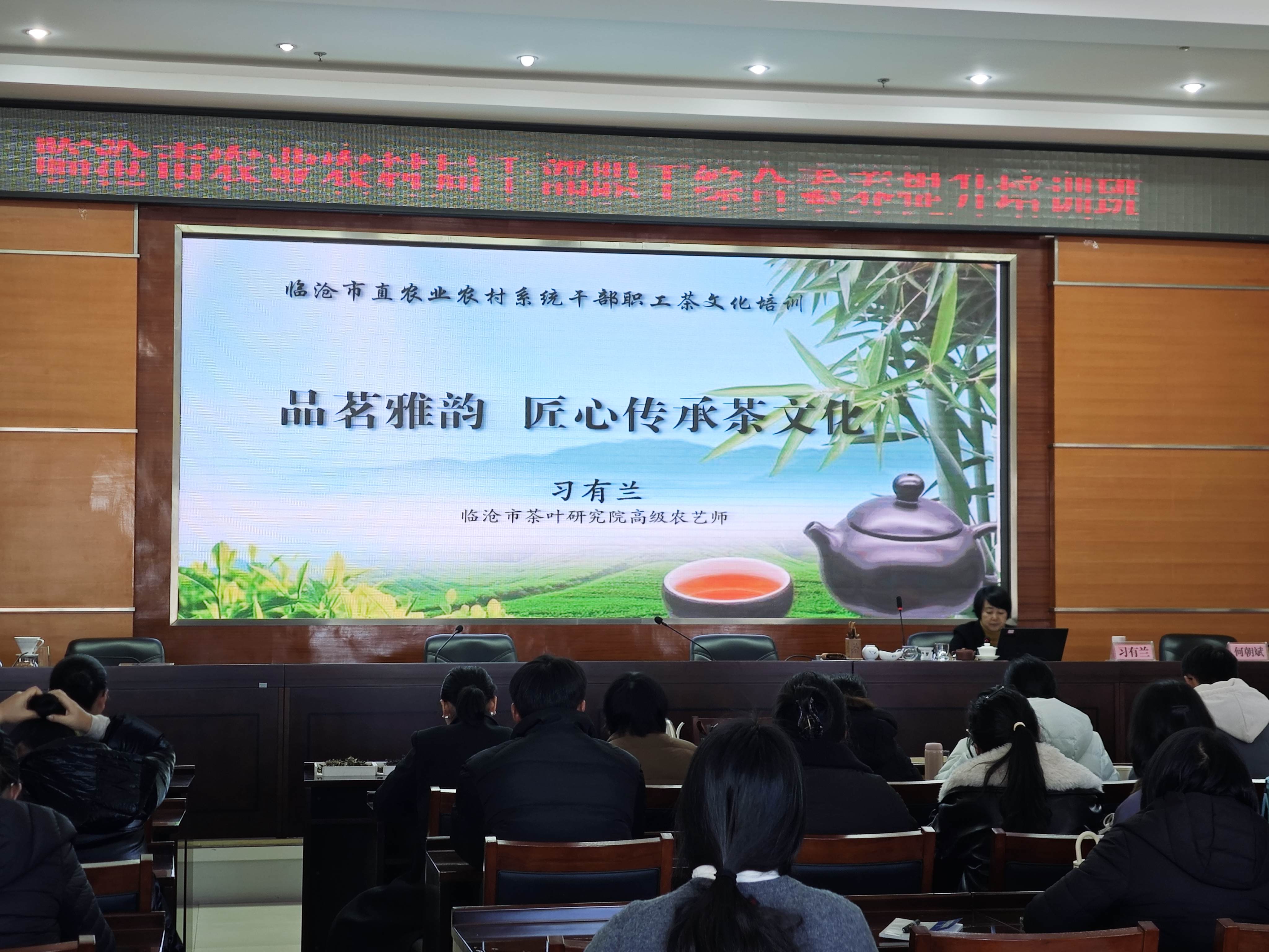 下午,临沧市茶叶研究院高级农艺师习有兰围绕《品茗雅韵-匠心传承茶文化》展开授课。作为国家级乡村振兴科技特派团专家,习老师深入浅出地讲解了茶的历史、分类、冲泡技艺及茶道精神,并现场示范茶艺操作,让大家在茶香中感悟“和静清寂”的文化底蕴,体会从容谦和的工作生活态度。