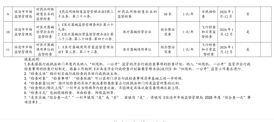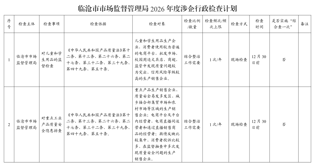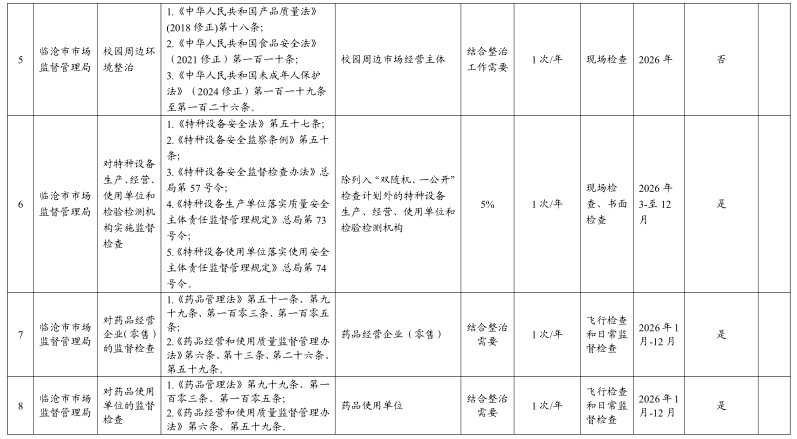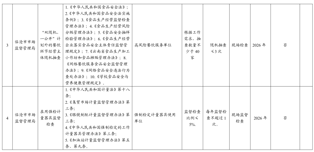 临沧市市场监督管理局 2026 年度涉企行政检查计划
