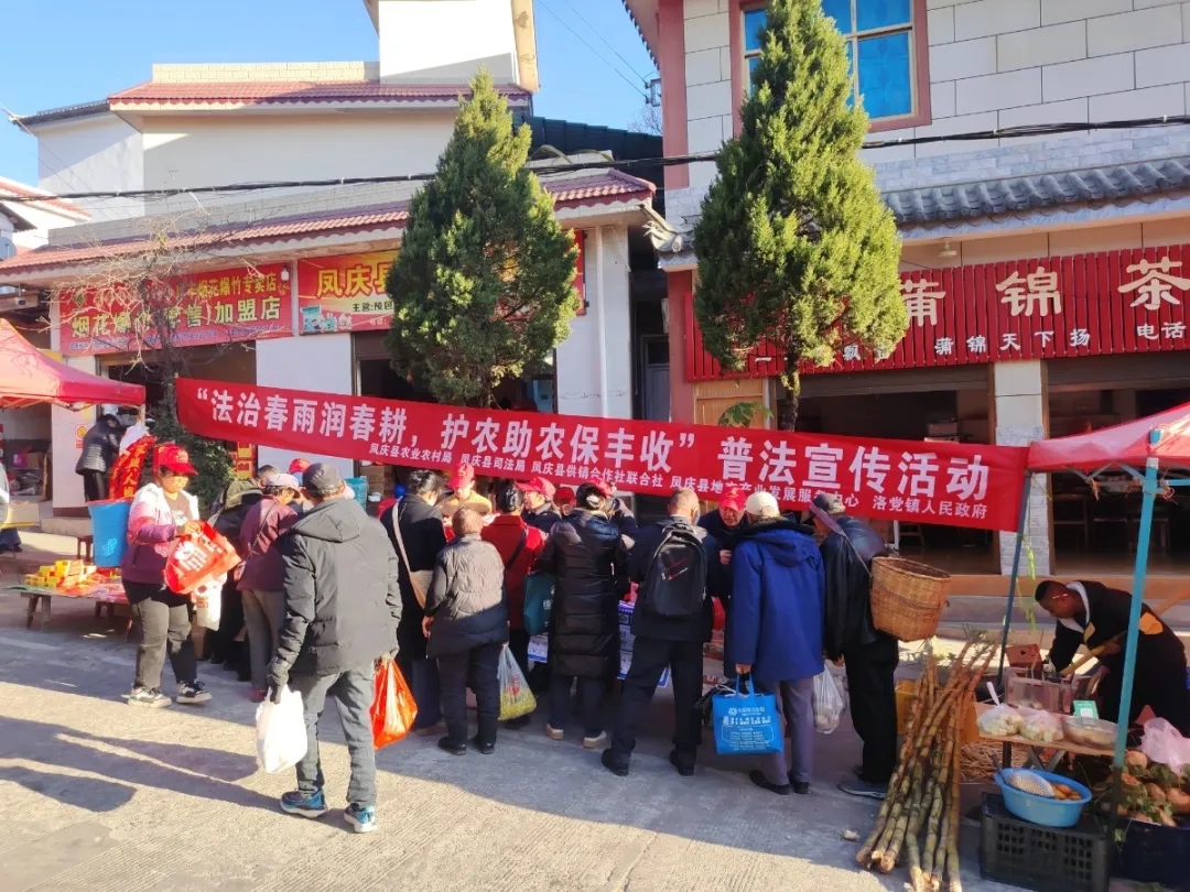 春启东方,耕播正忙。2月6日上午,凤庆县司法局紧扣“法治春雨润春耕,护农助农保丰收”主题,赴洛党镇厚丰村集市区开展春节前入村普法宣传活动,以法治力量为春耕备耕保驾护航。