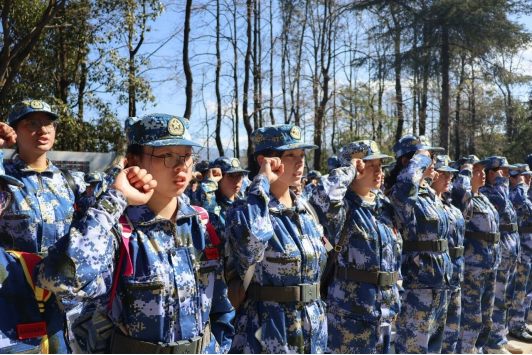 上午11时,队伍抵达临沧烈士陵园。在人民英雄纪念碑前,全体师生整齐列队,庄严的缅怀仪式在中华人民共和国国歌声中拉开序幕。默哀、鞠躬、敬献鲜花、参训学生表态发言、集体宣誓、以连为单位组织瞻仰烈士墓碑,每一个环节都凝聚着对先烈的深切缅怀与崇高敬意。爱国主义教育在此刻具象化为一个个庄重的动作、一声声铿锵的誓言,让红色记忆深深融入青春血脉,激励着新一代青年在实现中华民族伟大复兴的征程中奋勇前行,以实际行动续写时代华章。