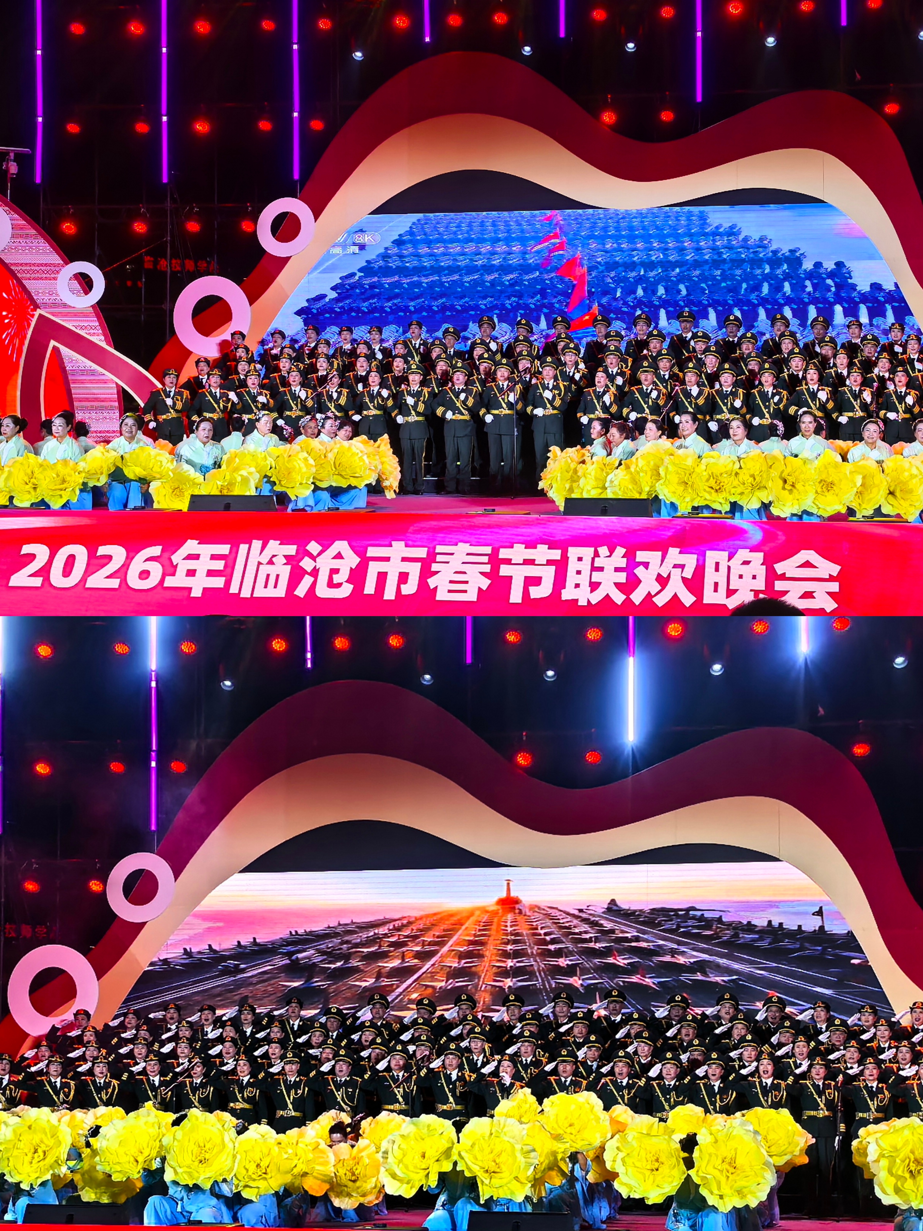 2月7日19:30,临翔区玉龙湖广场灯光璀璨,市退役军人事务局组织90名“临沧老兵合唱团”成员,参演2026年临沧市“和谐大舞台”群众文化优秀节目展演暨“军警民”春节联欢晚会,以经典红歌《我的祖国》献礼新春,用嘹亮歌声展现退役军人初心不改的精神风貌,为晚会增添浓厚双拥色彩。