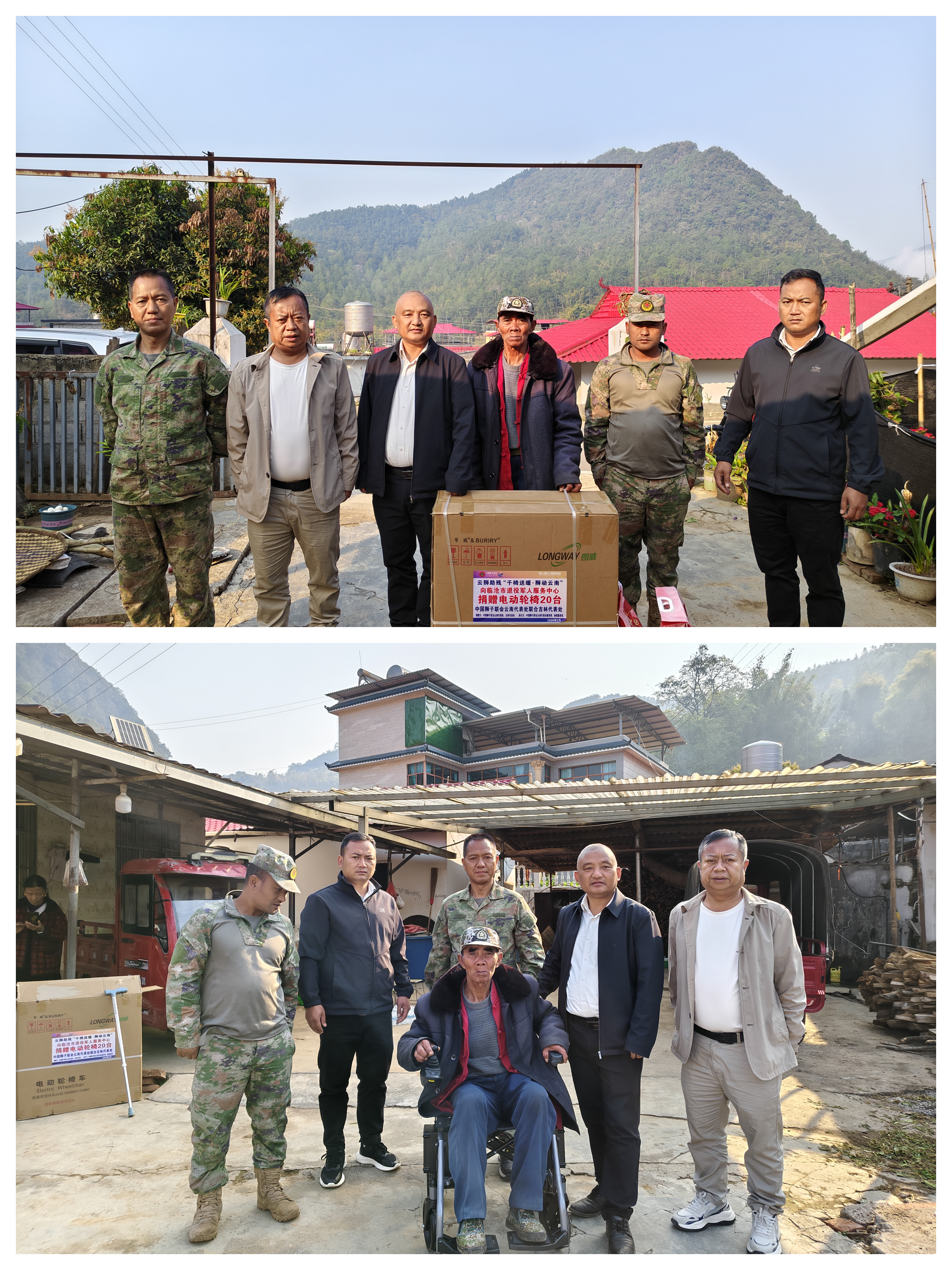 近日,沧源自治县退役军人事务局联合勐来乡政府,通过前期全面摸排、细致调研,精准掌握残疾军人出行不便等突出问题,为68岁残疾军人赵开平送上崭新轮椅及大米,并现场手把手指导老人及其家属掌握轮椅使用方法与日常保养技巧,细致叮嘱安全注意事项,确保老人能安全、便捷使用,解决了老人出行不便的难题,传递了党和政府的深切关怀,进一步弘扬了尊崇军人、关爱优抚对象的优良传统。老人及家属深受感动,紧紧握住工作人员的手再三致谢,言语间满是对党委、政府帮扶的感激之情。
