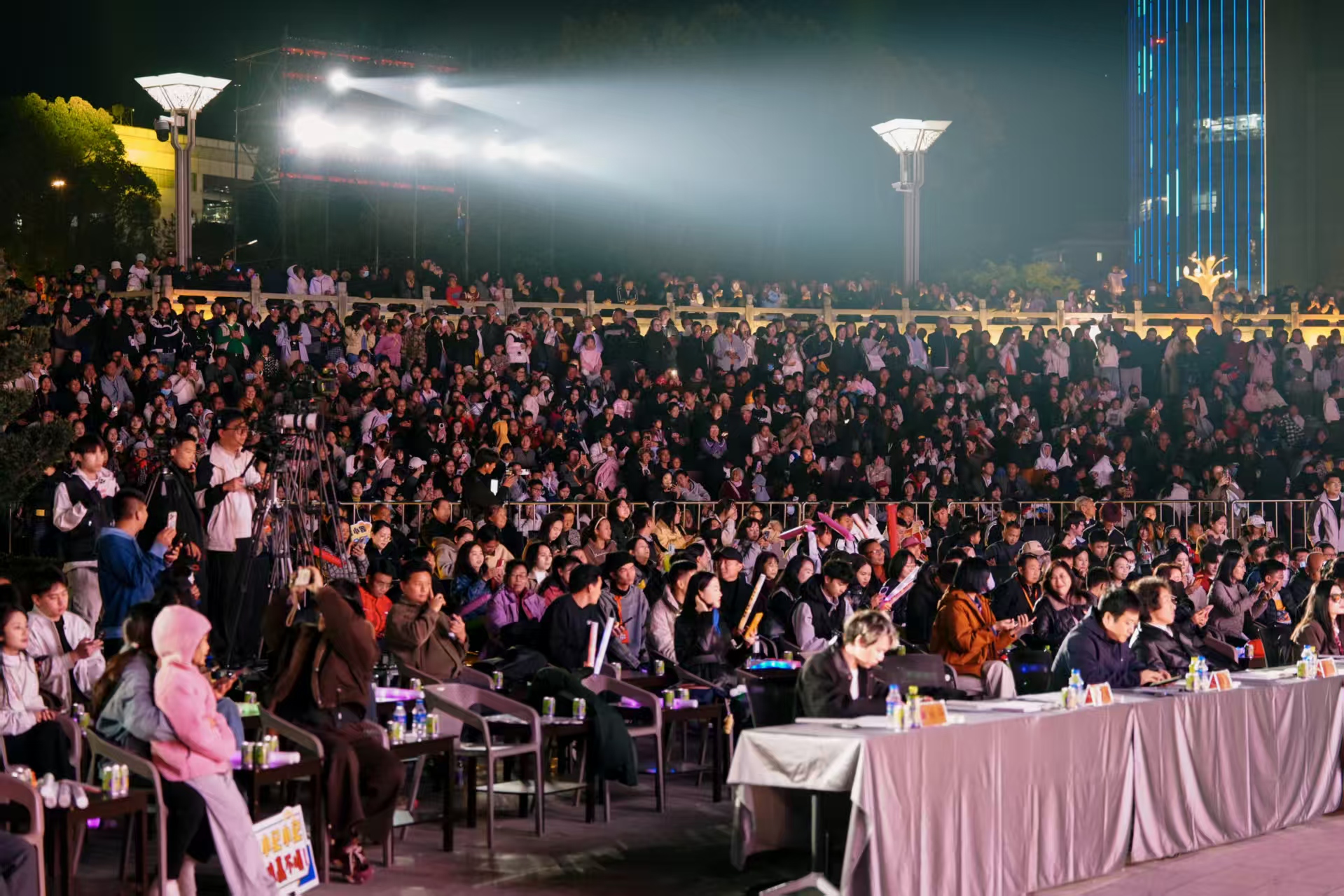 决赛开始,玉龙湖广场已人山人海,十强选手一起带来“临沧村唱”今年的主题曲《说唱就唱》,营造出快乐的氛围。